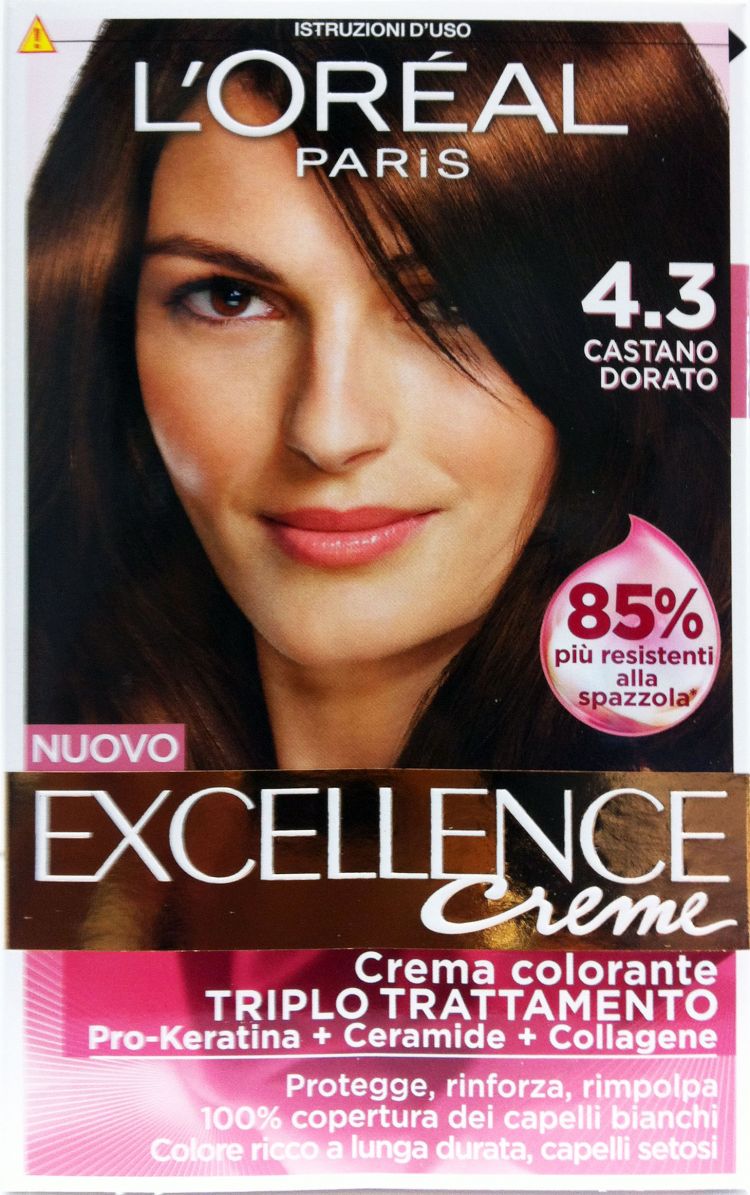 L'OREAL Excellence Crème 4.3 Castano dorato è un prodotto che offre una tripla protezione durante le fasi di colorazione.