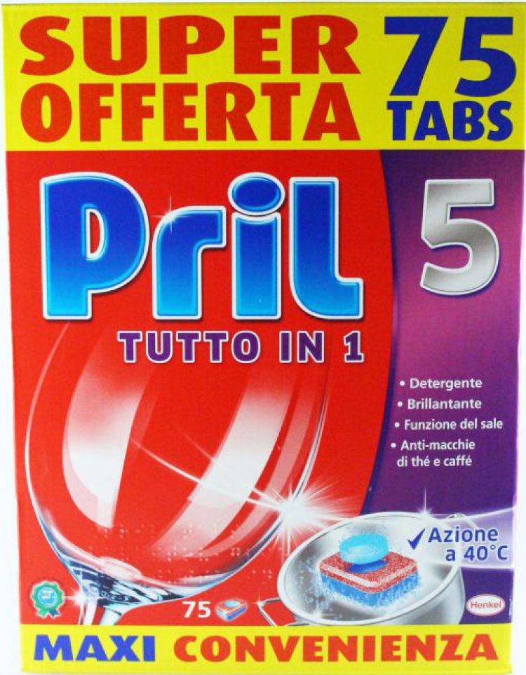 Il nuovo Pril 5 Tutto in 1 Tabs è un detersivo multifunzione per lavastoviglie in pratiche pastiglie predosate.